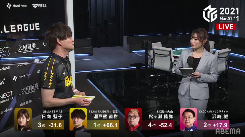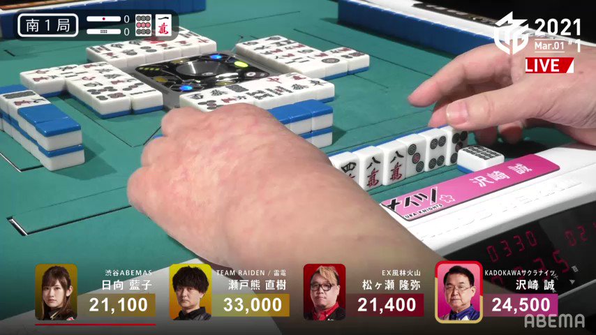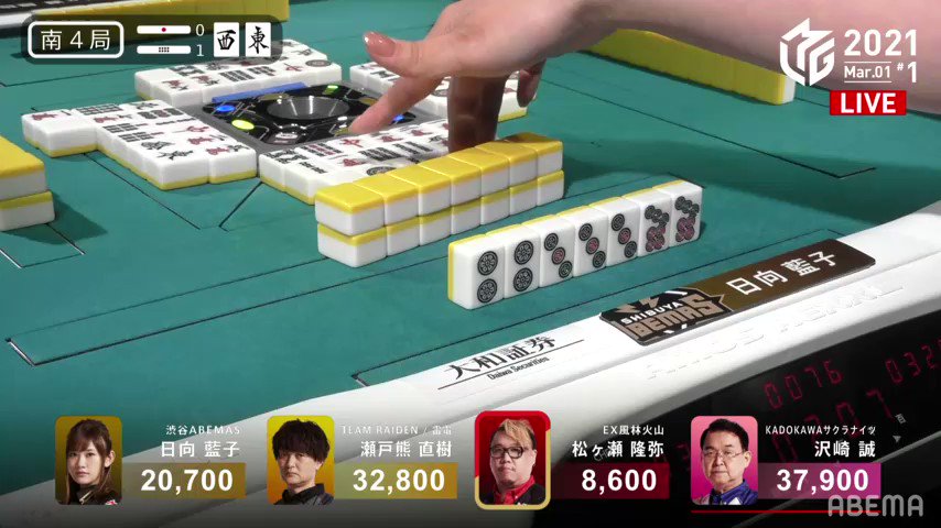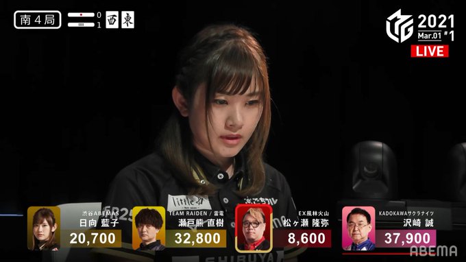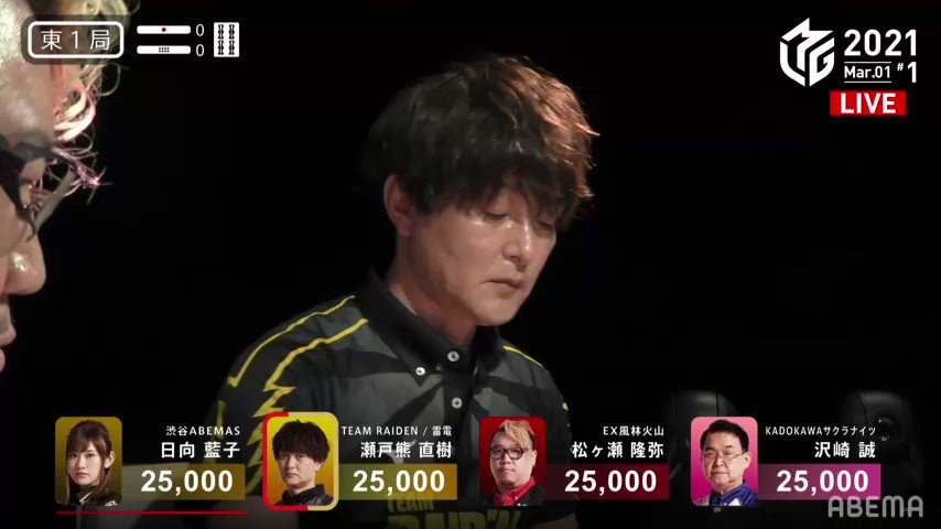 #麻雀 #Mリーグ #TEAM雷電 #瀬戸熊直樹 #沢崎誠 #日向藍子 #松ヶ瀬隆弥 #ABEMA pic.twitter.com/lEE4HKYDa7