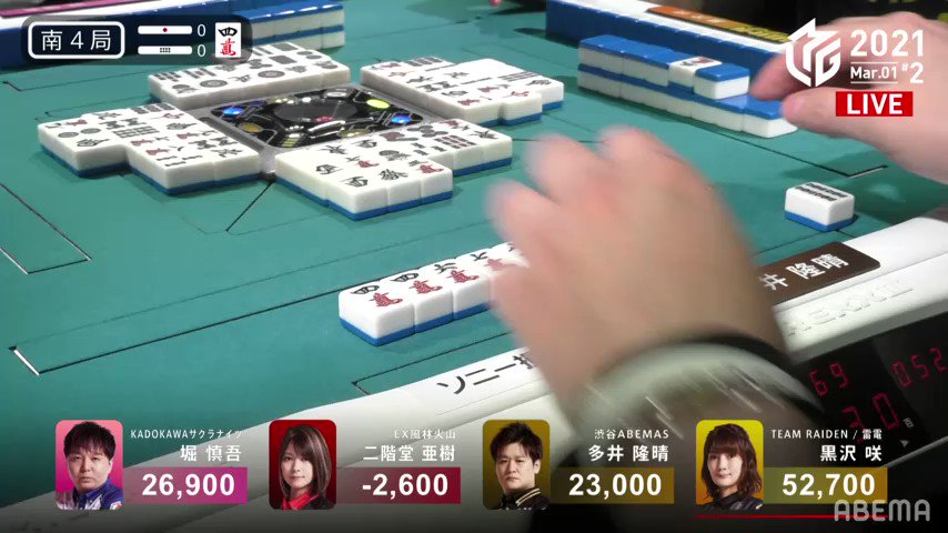 #Mリーグ #瀬戸熊直樹 #黒沢咲 #萩原聖人 #本田朋広 #TEAM雷電 #松本圭世 #ABEMA pic.twitter.com/7iQUm4M7SL