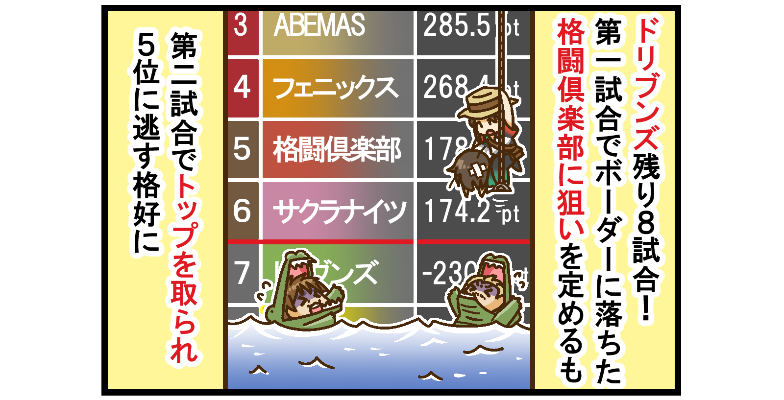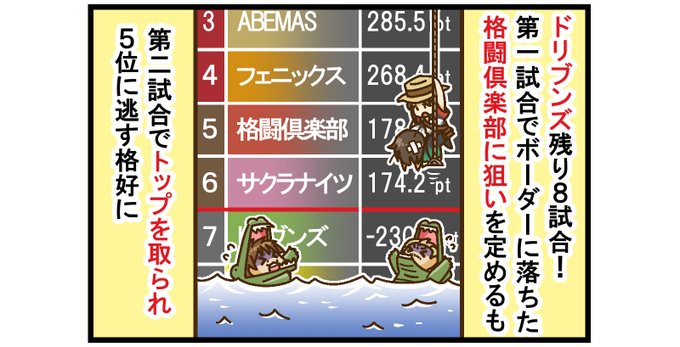 激アツ4位争い!イエローゾーン脱出を賭けるのはサクラナイツ、ここで際の4位に落っこちてきたのはABEMAS!痛恨12,000献上でカオスの様相!