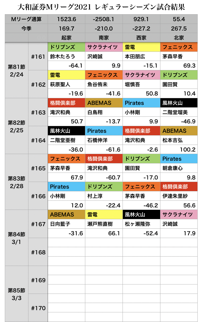 3/1(火) #Mリーグ 2021