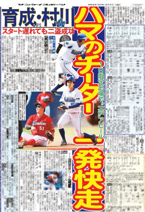今朝のサンスポ(東)は、1日限定昇格で一発快走を見せた育成の #村川凪 選手が紙面デビュー📰✨