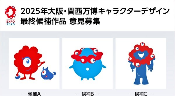「関西万博の公式キャラクターのデザイン最終候補作品3作品を発表」以下から選ばれるらしい。なかなかカオス。ある意味、病的にもみえる。