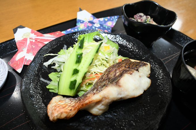 #奄美駐屯地 はひな祭りメニューで「#奄美産真鯛の塩焼き」と「#ちらし寿司」が出ました♪
