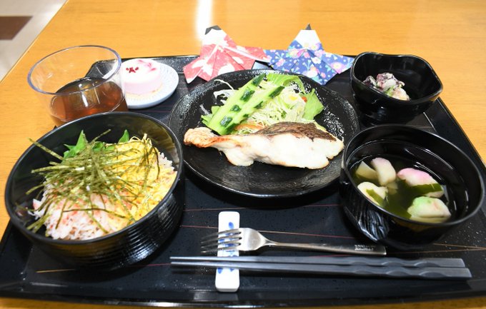 #多賀城駐屯地 本日のランチは、#ひなまつり メニュー! #ちらし寿司 鰺のなめろうフライ 厚焼き玉子入り清汁 こんにゃくもちと、隊員たちは大満足!イベント毎に特別メニューが食べられる多賀城駐屯地は最高です!(^^)!糧食班長、ありがとうございます。午後も訓練頑張ります! pic.twitter.com/X82hDEfavR