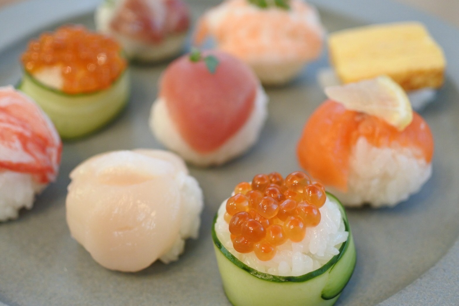 スモークサーモンやイカのお刺身なども一緒にバラの形にして並べても🎶