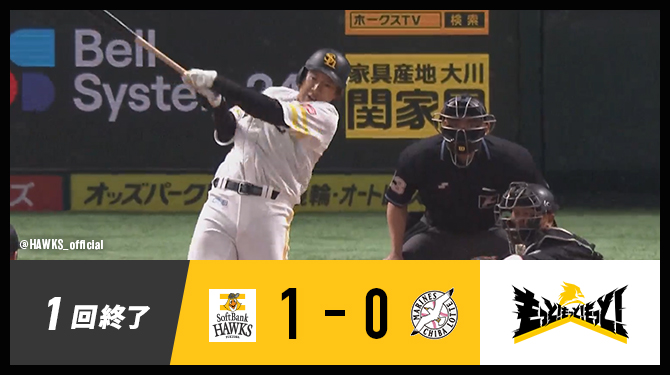 福岡ソフトバンク・柳田選手がセンターへタイムリーツーベースヒットを放ち、福岡ソフトバンクが先制!