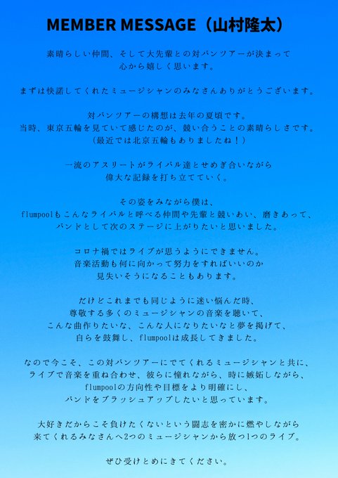 是非、これからもお楽しみに💁♂️ twitter.com/flumpool_staff…