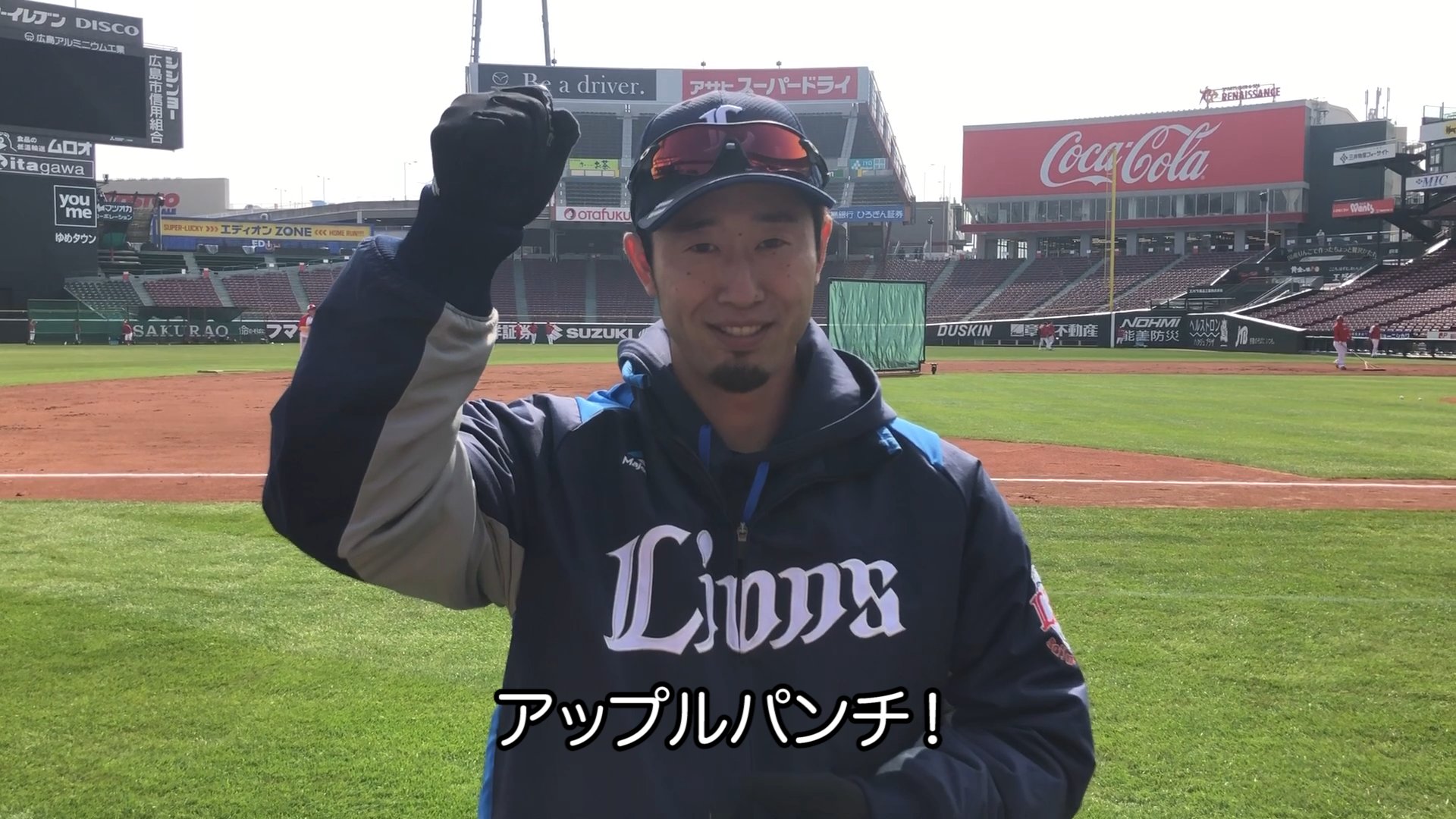 練習中の #外崎修汰 選手と目があったのでファンの皆さんへのメッセージ、そしてアップルパンチをお届けします!