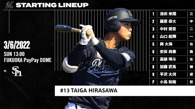 本日は14時試合開始のデーゲーム。「勝利に貢献できるプレーができるように頑張ります!」と #平沢大河 選手。#chibalotte #オープン戦 #広報 pic.twitter.com/UjIoBEwveS