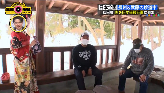 本日放送された #櫻井翔 さんの #SHOWチャンネル に #金萬 が少しだけ登場しました💁♀️#長州力 さん、 #武藤敬司 さん、そして #あきた舞妓 さん、ありがとうございました🙇♀️ pic.twitter.com/O6TDaRKPGZ