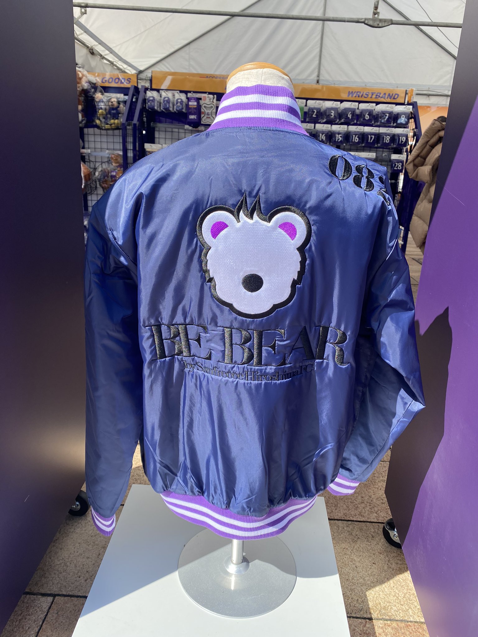 2019年から販売しているスタジアムジャンパーを『BE BEAR』リメイクして特設グッズ売店に展示しております‼︎