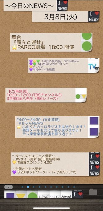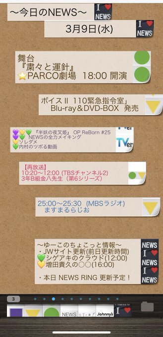 3/8火 『今日の #NEWS 』&付箋オマトメ💜💛💚