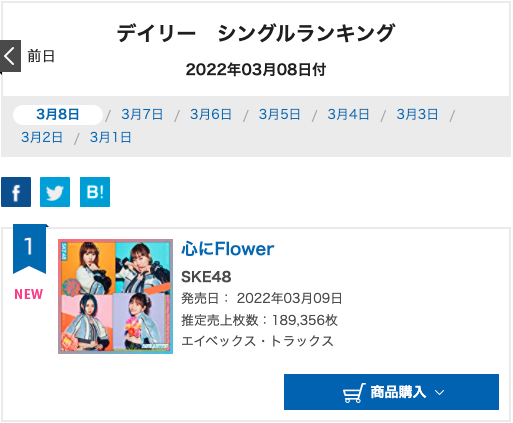 そして、オリコンデイリーランキング
