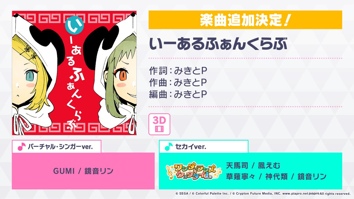 先日書き下ろし楽曲を提供してくださったみきとPさんの『いーあるふぁんくらぶ』の追加が発表されました!!