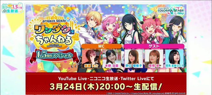 このあと20時より『プロジェクトセカイ ミクの日&もうすぐ1.5周年生放送』を生配信📺