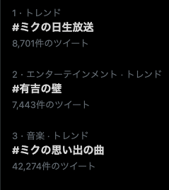 【#ミクの日生放送】トレンド1位達成🎉