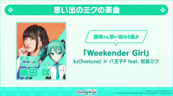 藤田咲さんの #ミクの思い出の曲 は「Weekender Girl」