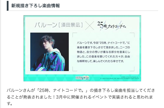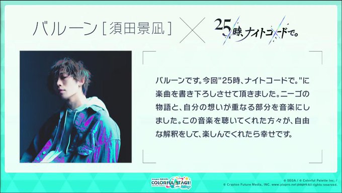 ニーゴの書き下ろし楽曲を"バルーン(須田景凪)"さんが担当してくださりました!