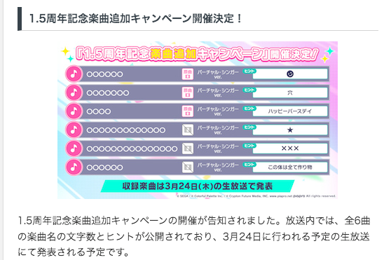 1.5周年の楽曲追加キャンペーンが開催されます!!