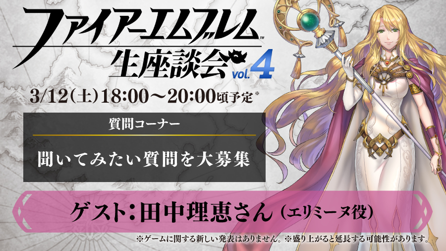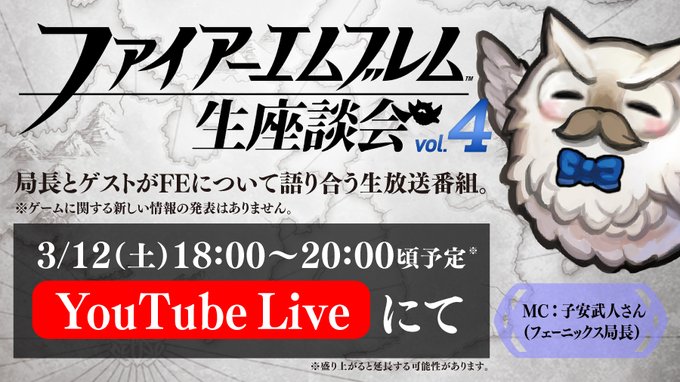 このあと18:00から、YouTube Liveにて「 #ファイアーエムブレム 生座談会 vol.4」生放送開始!