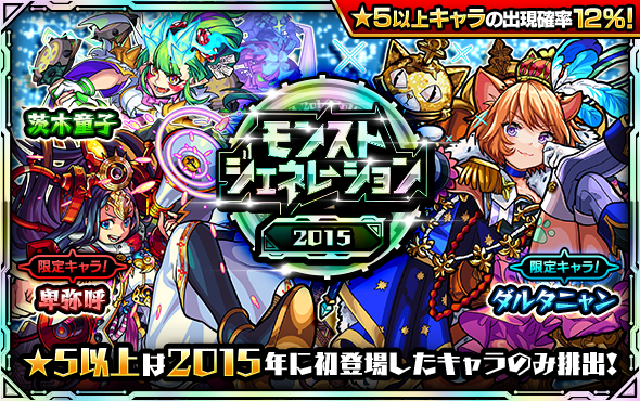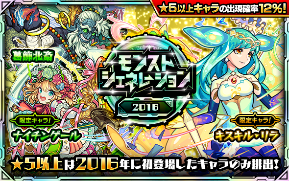 明日正午~ガチャ「モンストジェネレーション」が「2013&2014、2015、2016」の年代別で開催💡