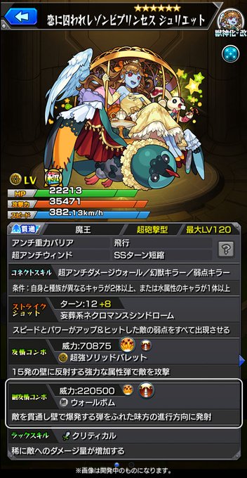獣神化・改「ジュリエット」!重力バリア、地雷、ウィンド、ダメージウォールの4つのギミックに対応できる驚異の汎用性が魅力!スピードとパワーがアップ&ヒットした敵の弱点をすべて出現させるストライクショットと弱点キラーの相性も抜群!#モンスト pic.twitter.com/zBExzlPMNG