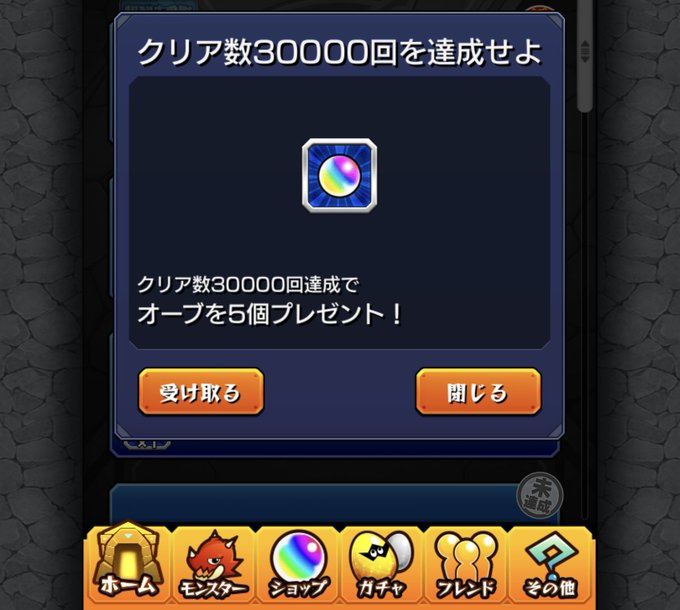 クリア数30000回でオーブ5個😍