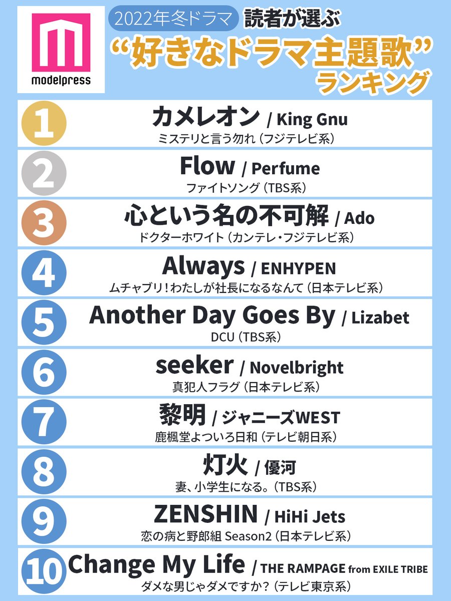2022年冬❄️好きなドラマ主題歌ランキング🎤