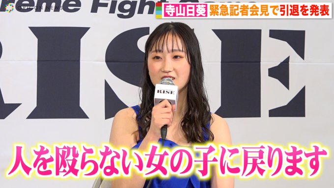 【動画🎥】“RISE女王”寺山日葵が現役引退を発表「人を殴らない 蹴らない女の子に戻ります」 “同門”那須川天心からの言葉に感謝✨