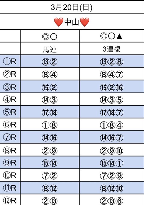 中山2.3.4.5.6.8.9.10.11.12R(#スプリングS)不利馬、予想