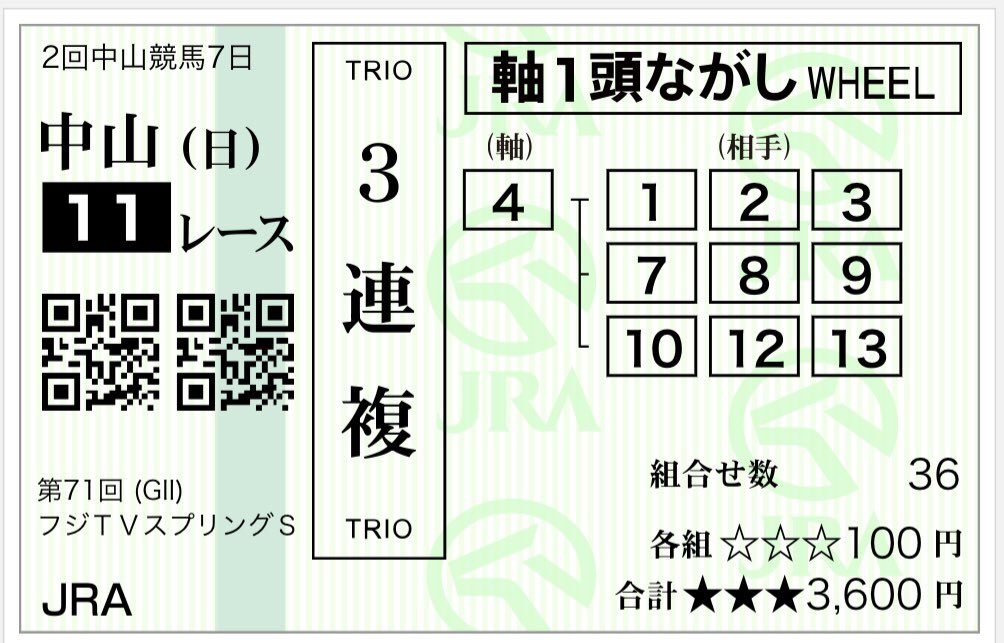 #WIN5 #阪神大賞典 #スプリングS pic.twitter.com/WJm4aPCccf