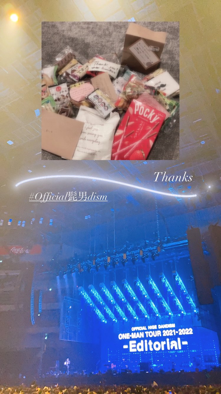 #Official髭男dism #Editorialツアー さいたまスーパーアリーナ公演初日、無事終演しました!ならちゃんパピバ。また一緒に朝まで市中飲み歩ける日常が戻るまで、生きてく強さを重ね合わせ愛に生きような。明日もがんばりまーす!!