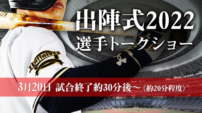 オープン戦最終戦となる本日3月20日(日)試合終了約30分後に、「出陣式2022選手トークショー」を開催!その様子を球団公式YouTubeチャンネル「BsTV」で生配信いたします!ぜひご覧ください。