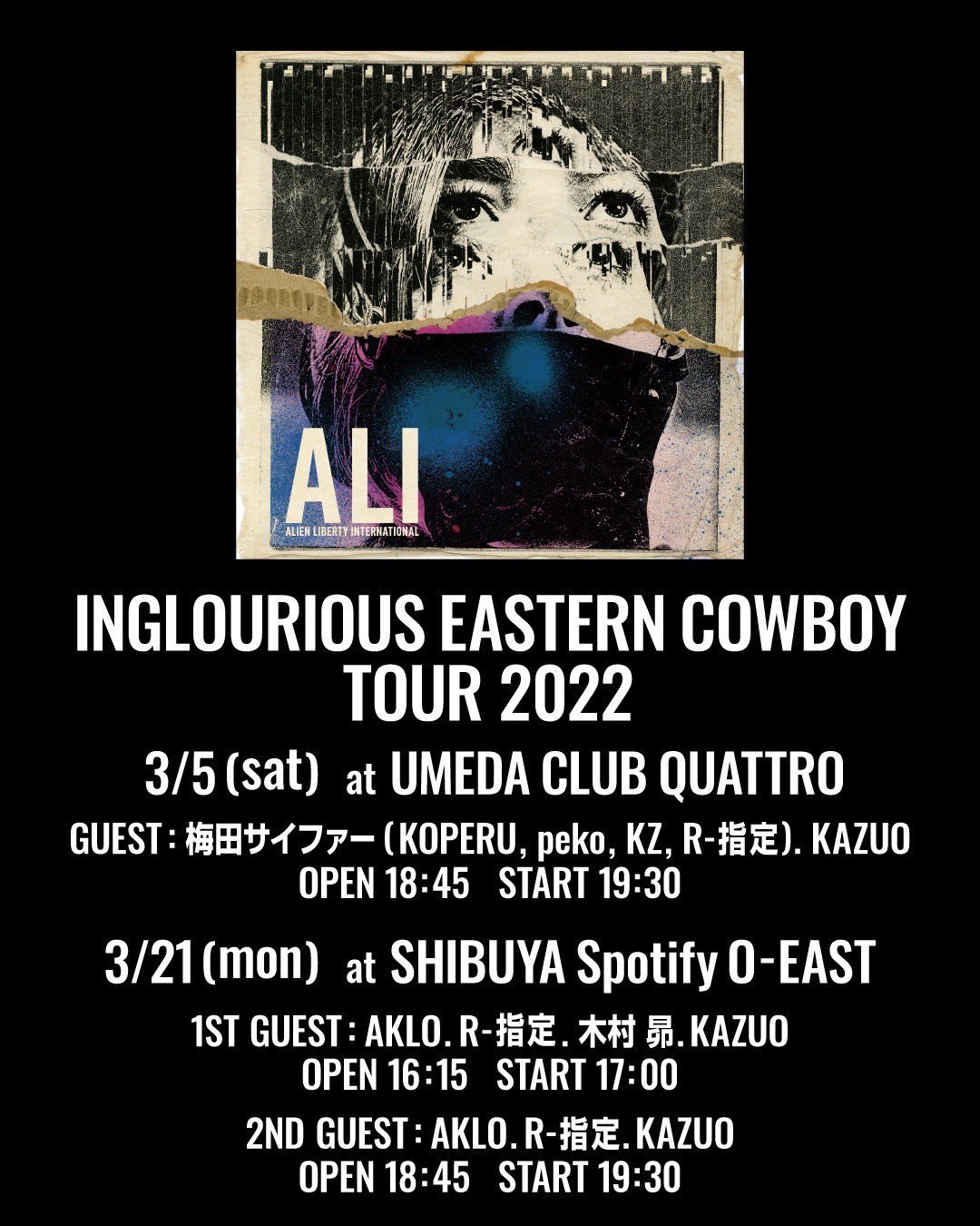 INGLOURIOUS EASTERN COWBOY TOURよりR-指定さんのラップ #ALIMUSIC pic.twitter.com/X8GQ5Srf1x