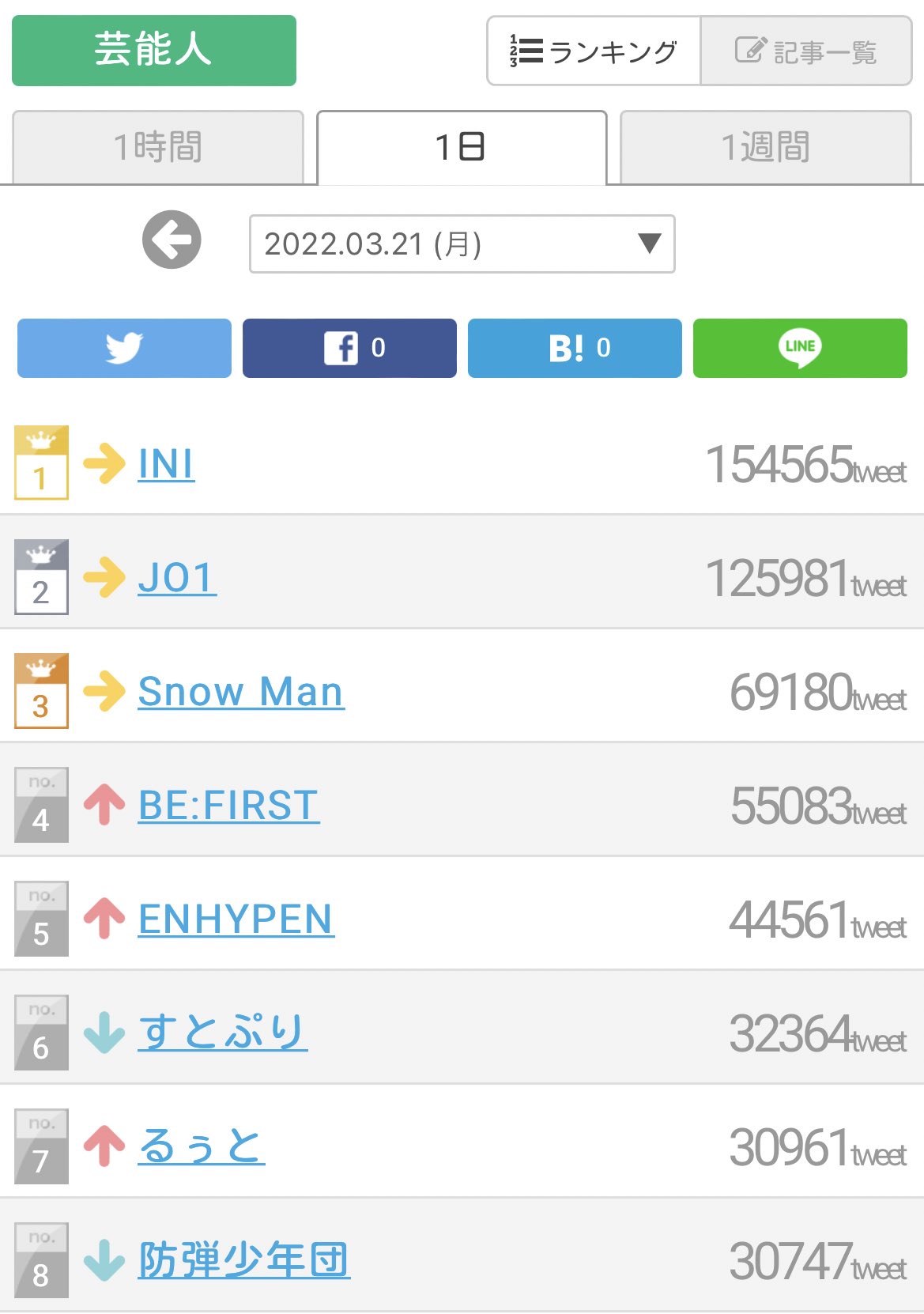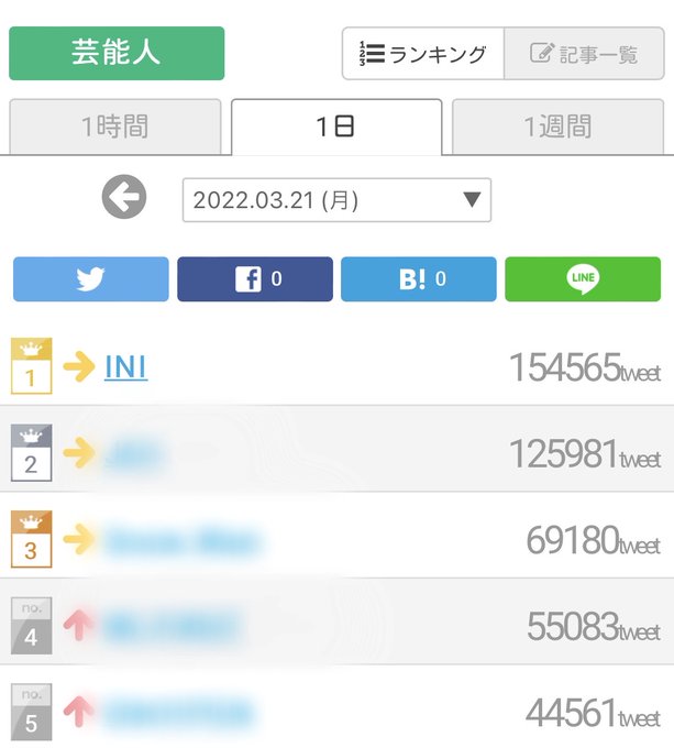 📢デイリーのついラン結果【芸能人】