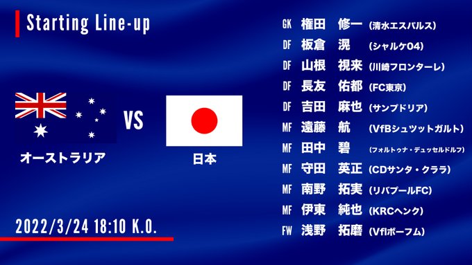 #SAMURAIBLUE スタメン発表🇯🇵