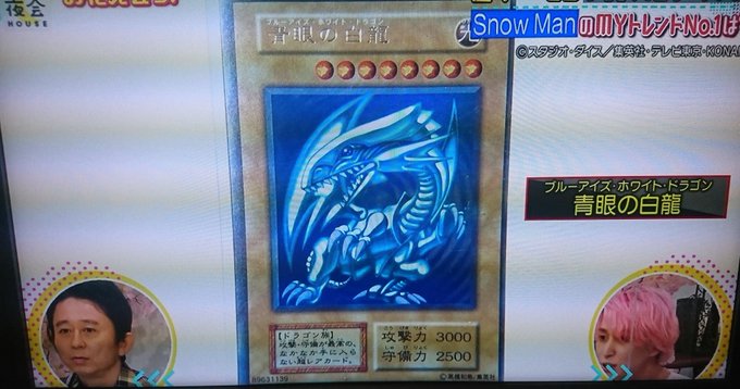 海馬社長(CV.津田健次郎さん)「何?!伝説の初期の【青眼の白龍】カードだと?!それを一番CDが売れてるSnow Manのメンバーが持っているとは…最強のオレのように、正に最強のアイドルグループにふさわしい…。」