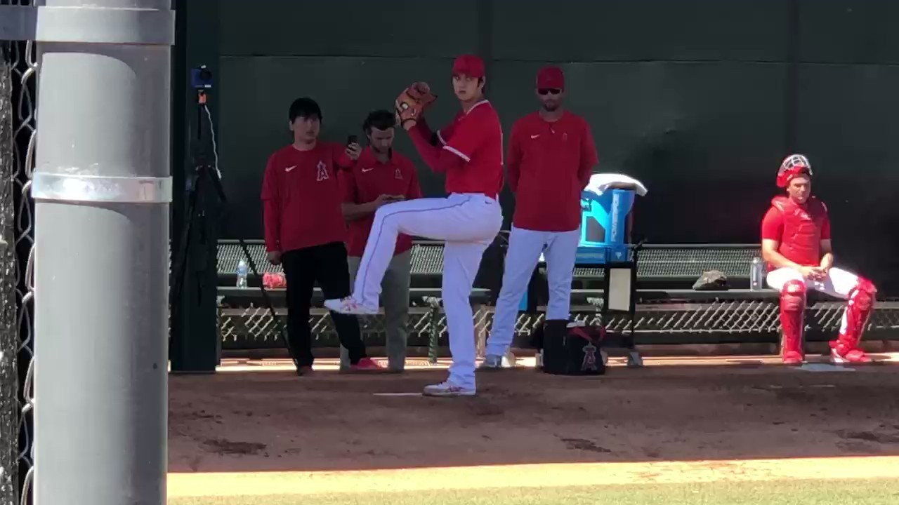 #エンゼルス #大谷翔平 選手は試合開始40分前までブルペンで投球練習。捕手を座らせ21球、3分間のインターバルを挟んで、22球(計43球)を投げました。これから「1番・DH」で出場します。 pic.twitter.com/hbzrdRg5IG