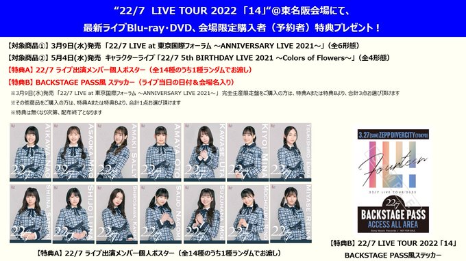 🎪22/7 LIVE TOUR 2022『14』Zepp DiverCity(TOKYO)にてBlu-ray・DVD購入者(予約者)対象特典決定👏