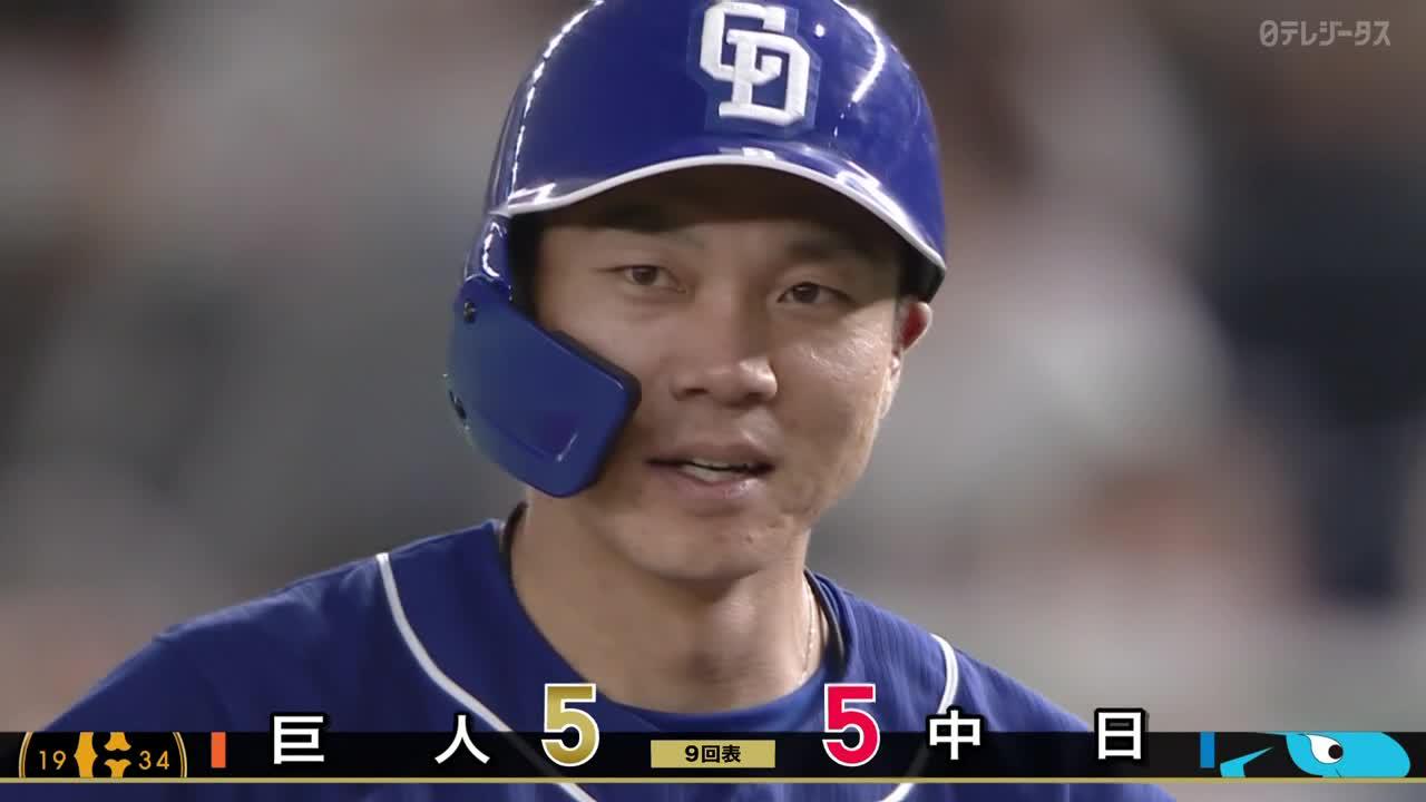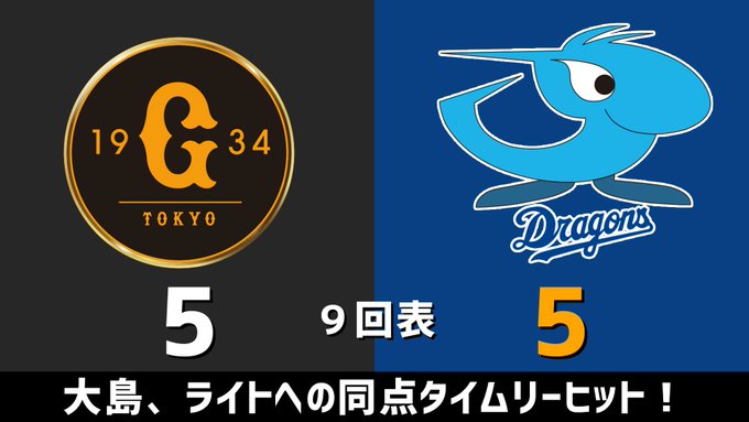 9回表 大島、ライトへの同点タイムリーヒット!