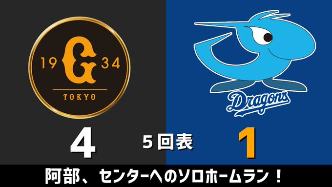 5回表 阿部、センターへのソロホームラン!