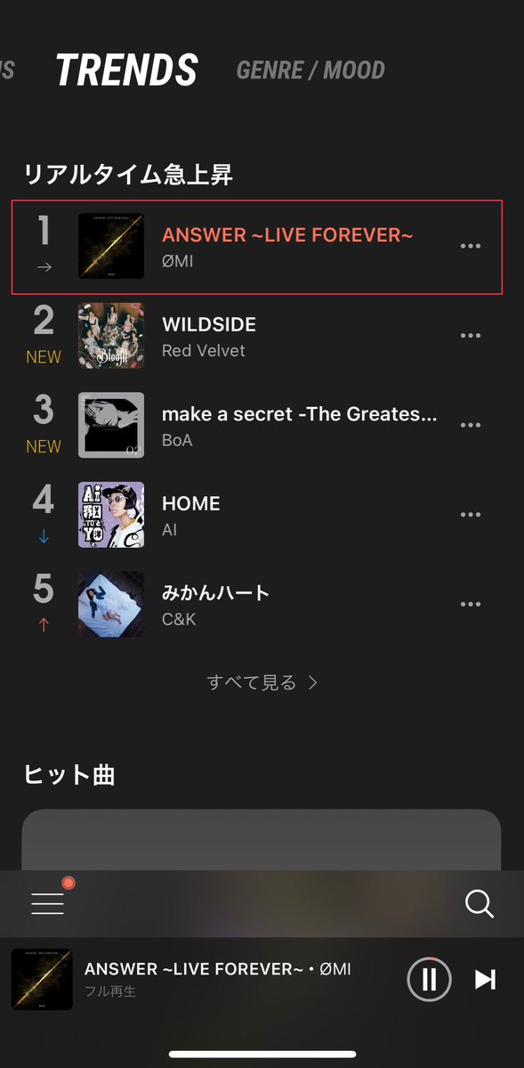 #AWA リアルタイム急上昇楽曲トップ100で早速第1位です🥇✨