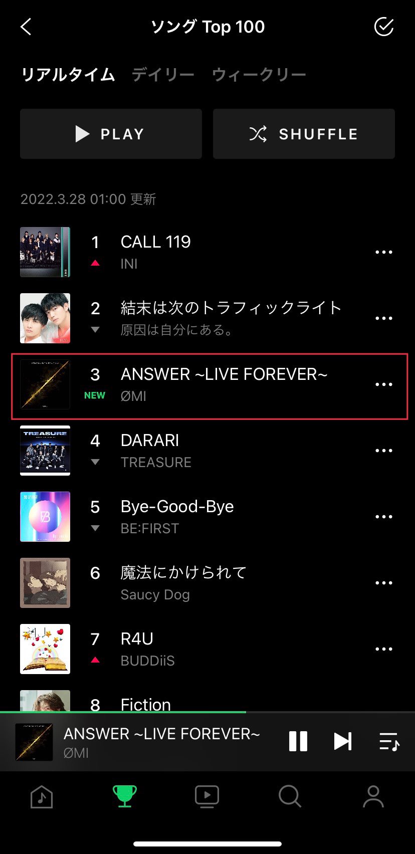 #LINEMUSIC リアルタイムランキング Top100では第3位です🥉✨