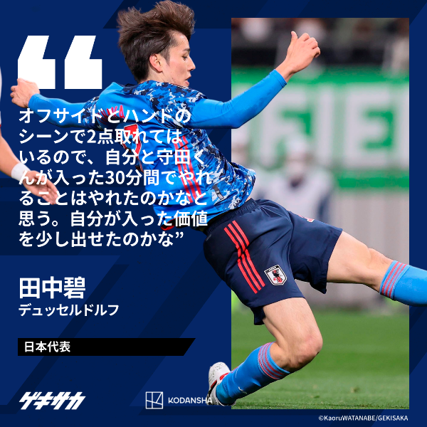 幻のゴールと幻のアシスト…田中碧「30分間でやれることはやれたのかな」