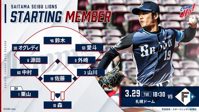 本日18:30の #ファイターズ 戦スタメンはこちら