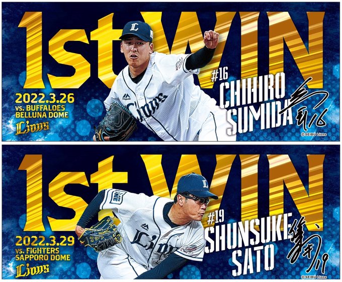 プロ初勝利をあげた #隅田知一郎 選手と #佐藤隼輔 選手の記念グッズが本日から発売されることになりました。ライオンズオンラインストアで申し込みできます。 pic.twitter.com/3guf6sdnNK