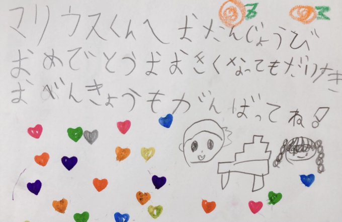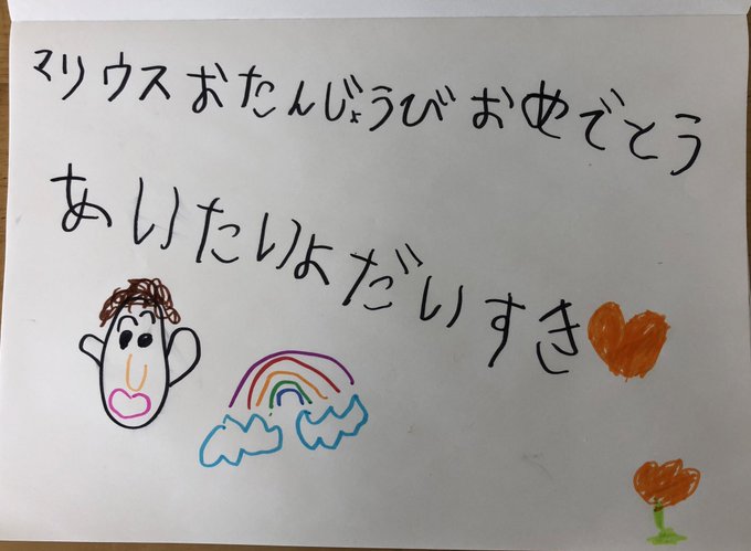 我が家のマリ担長男くんから、マリウスくんへのラブレター💌🧡