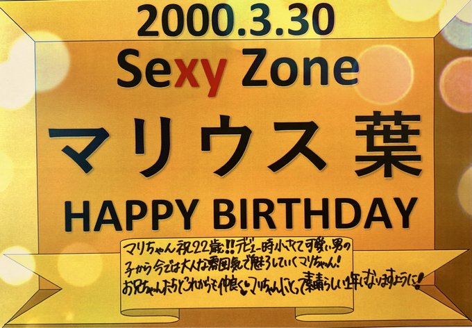 マリちゃんがもう22歳になるなんて!もう人生の半分はSexyZoneのマリウスなんだね!22歳のマリウス にもいいこといっぱいありますように!お誕生日おめでとう! pic.twitter.com/k1DGWWo1Wq