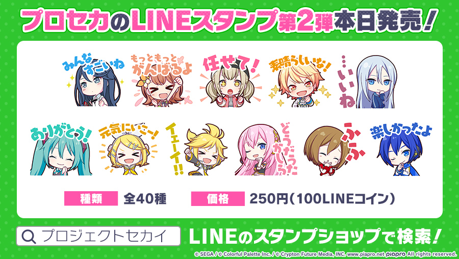 「LINE」アプリのスタンプショップから「プロジェクトセカイ」で検索してください✨