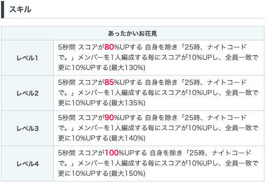 基本UP値は低めですが、編成条件を満たすことで過去最大のスコアUP値を誇るようになります!